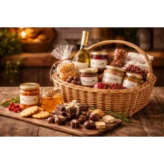 Des paniers garnis 100 % français pour remercier vos équipes ou partenaires. Nos coffrets sont composés de produits artisanaux issus de nos terroirs, parfaits pour les fêtes, séminaires ou remerciements personnalisés.