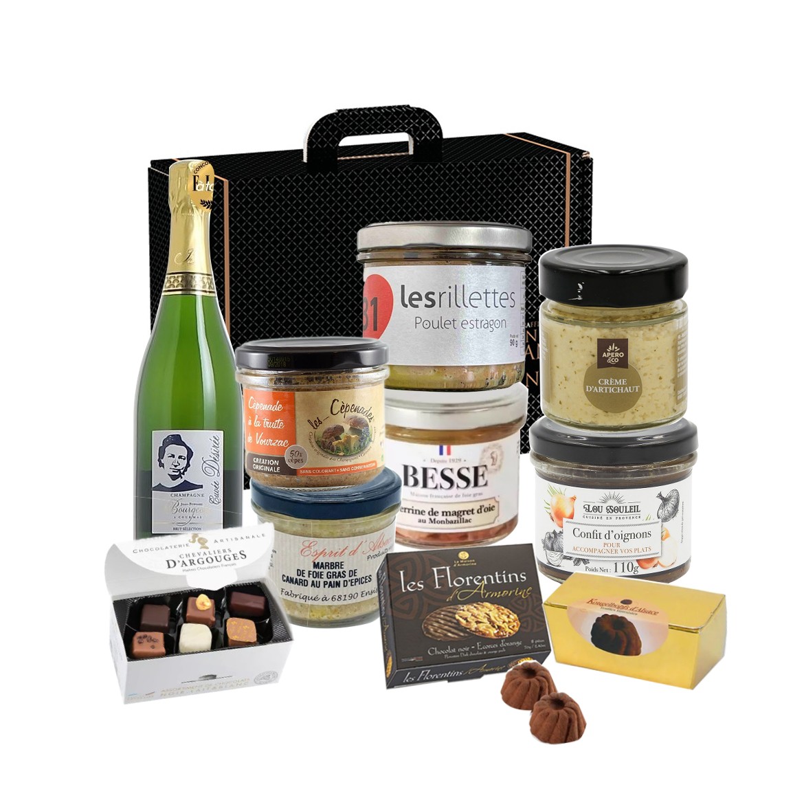 Pour poursuivre votre découverte, consultez également nos paniers gourmands régionaux, nos coffrets de Noël, notre sélection de champagnes et bulles festives ainsi que nos spécialités salées et douceurs sucrées artisanales.
