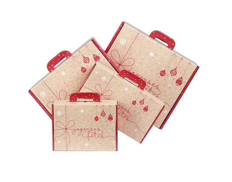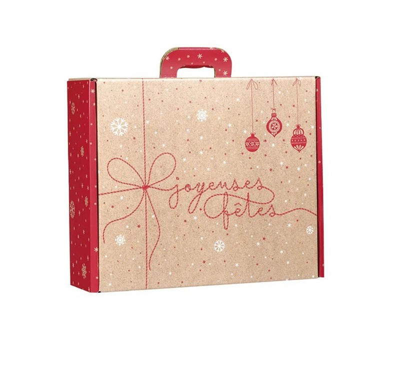 Valisette carton kraft Surprises d’Hiver rouge : un emballage festif et pratique pour vos cadeaux