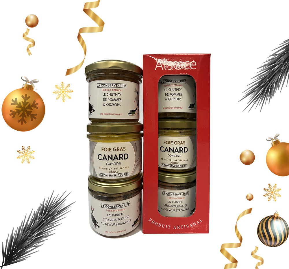Composition et caractéristiques du coffret – Foie gras, terrine alsacienne et chutney